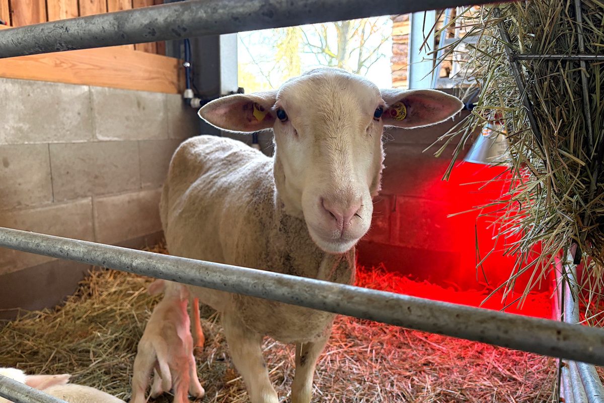 Darunter gab es sogar eine große Besonderheit: Ein Mutterschaf gebar Drillinge! Während Zwillinge bei Schafen recht häufig vorkommen, sind Drillingsgeburten sehr selten. „Das Muttertier hat die Geburt gut verkraftet“, berichtet terra-Geschäftsführer Henrik Thunecke. Auch die drei kleinen Lämmer sind gesund und saugen kräftig. Aber die wohlige Wärme unter der Rotlichtlampe tut ihnen auch noch gut.