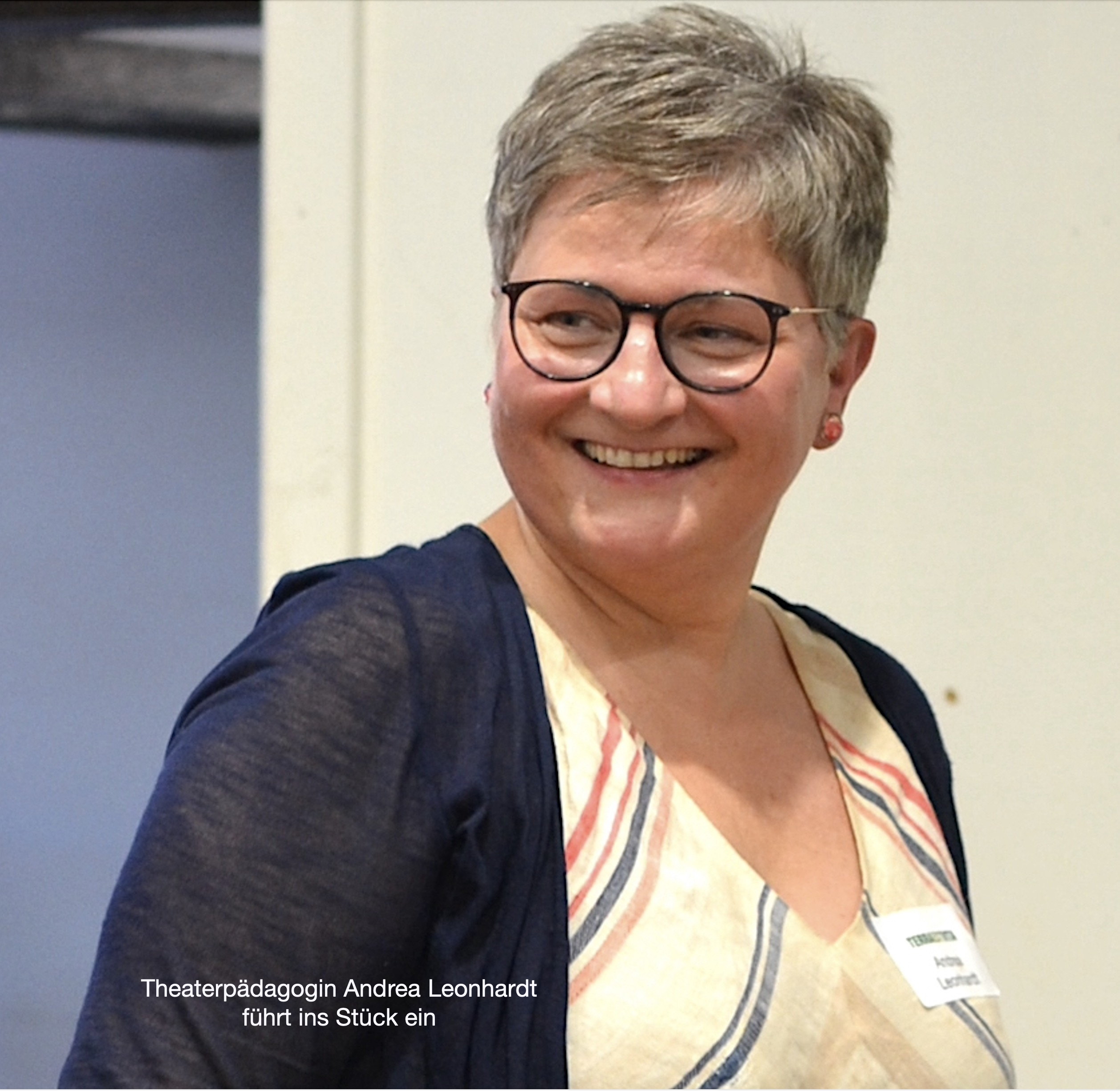 Es ist kurz vor 16.30 Uhr am Nachmittag. Draußen strahlt die Sonne mit den vielen Sommerfest-Gästen um die Wette, drinnen wuselt es auf und hinter der Bühne der Tenne. Die Künstler*innen und ihre Leitung nehmen noch rasch letzte Vorbereitungen vor: Sitzt das Kostüm? Wie ging nochmal der Text? Steht das Bühnenbild? Wer tritt zuerst auf? Die Theaterpädagogin Andrea Leonhardt hat alle Hände voll zu tun, ihre von leichtem Lampenfieber befallene Schauspieltruppe zu beruhigen.